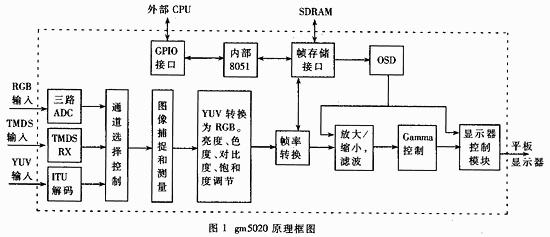 图2是gm5020应用在PDP平板显示系统中的硬件电路结构图。